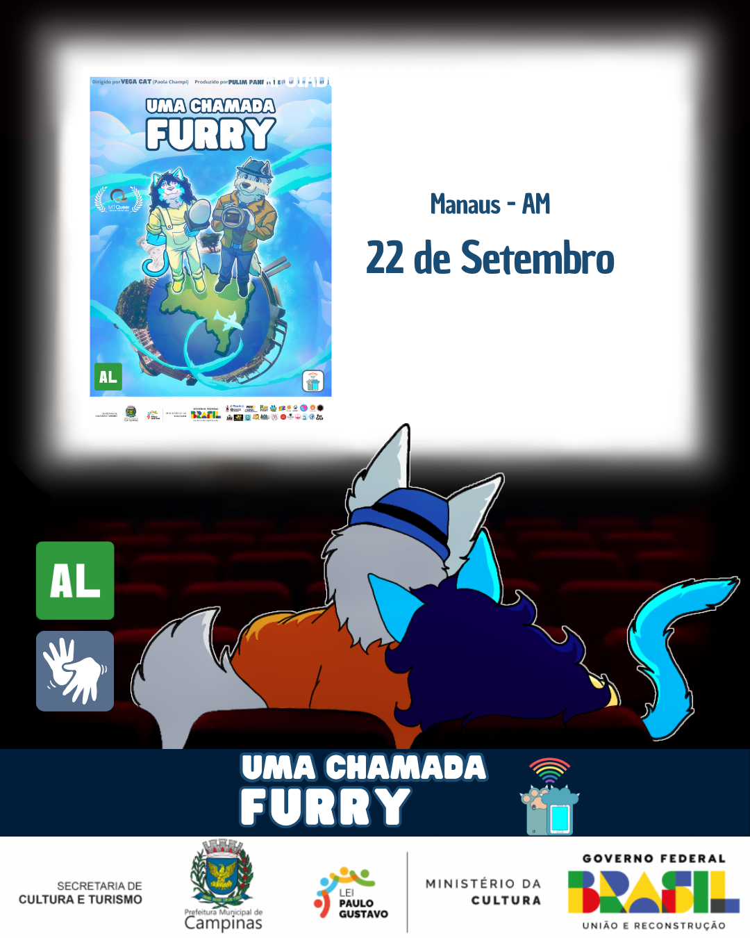Projeto contemplado pelo Edital de Fomento 02/2023 Audiovisual da Lei Paulo Gustavo de Campinas/SP e apoiadores do catarse.🐾🐺😸Patinhas para o alto! Já assistiu ao documentário Uma Chamada Furry? Para quem não teve a oportunidade ainda de ver o filme ou quiser ver novamente, aqui vai os próximos lugares onde ele estará sendo exibido: 📍 Cinema de Arte de Rua, Manaus - AM, no Largo de São Sebastião. Dia 22 de setembro, às 18h30. Uma sessão com tradução em libras. 🎨 Arte de The Night Star ✒️ Ilustração do carta de Easy Vock Projeto contemplado pelo Edital de Fomento 02/2023 Audiovisual da Lei Paulo Gustavo de Campinas/SP e apoiadores do catarse.0 Comentários 0 Compartilhamentos1