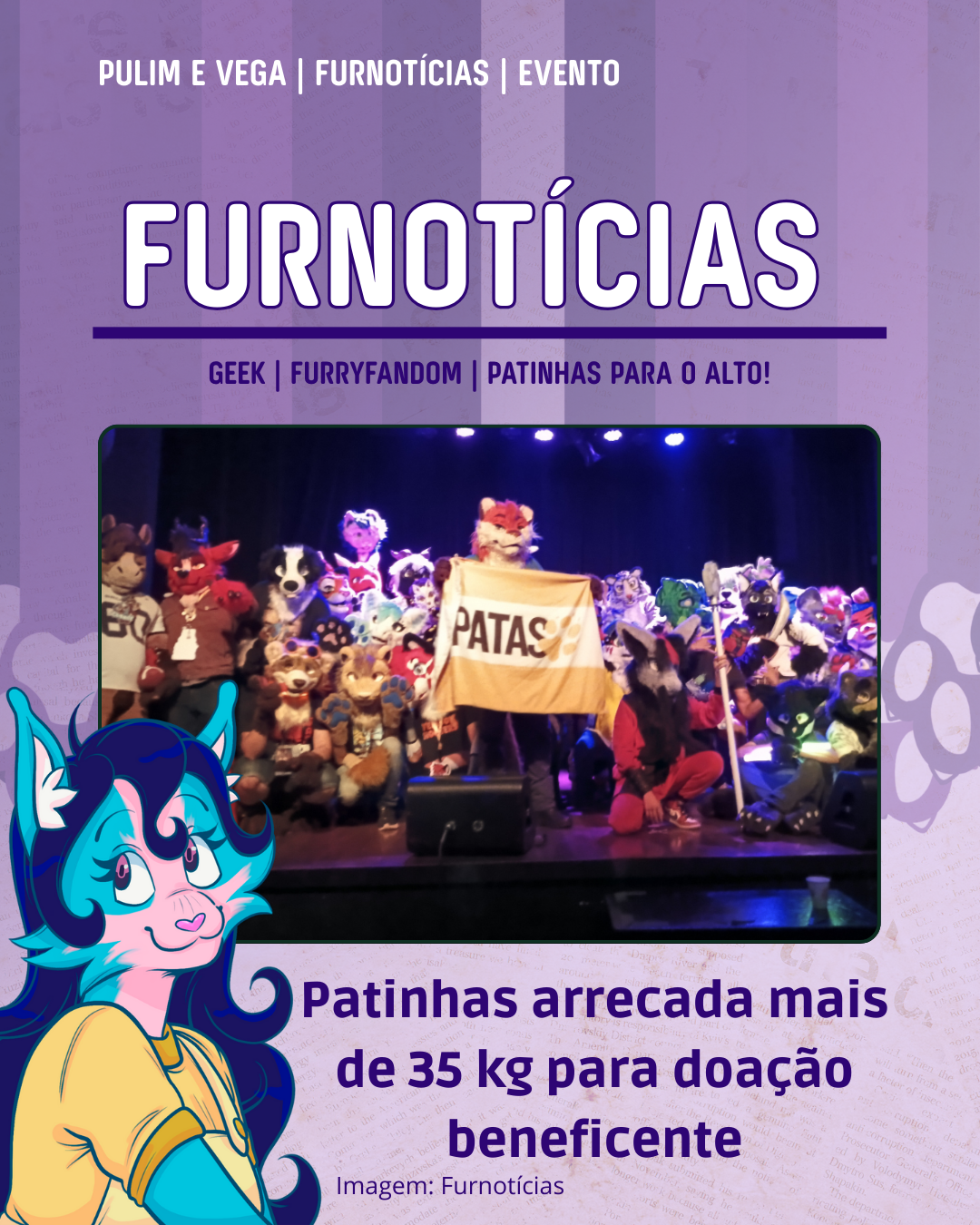 🐺💬 Tendo ocorrido no último sábado (29), o evento durou o dia todo e contou com muitas atividades. Entre elas a exibição do documentário Uma Chamada Furry, o show do grupo de Idol de J-pop, Tapioca Club e painel com o dublador Raul Schlosser. Esta edição aconteceu no Centro Cultural da Diversidade, em São Paulo, capital, e, em atividade beneficente, arrecadou mais de 35 kg de ração para a ONG Perfeitos e Especiais, que cuida e busca lares para gatinhos com condições especiais. Além da doação, a colaboração conseguiu com que quatro gatinhos fossem adotados e saíssem do evento com uma casinha.